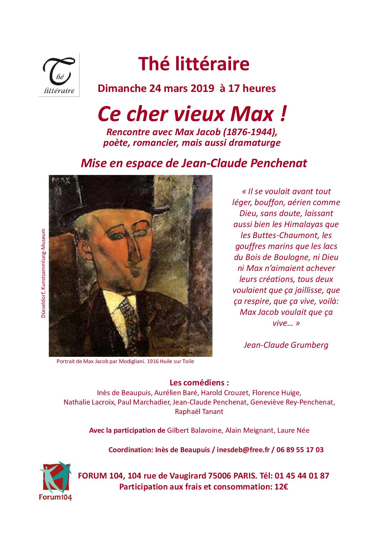 Thé littéraire : "Ce cher vieux Max !" le 24/03/2019 17h au Forum 104