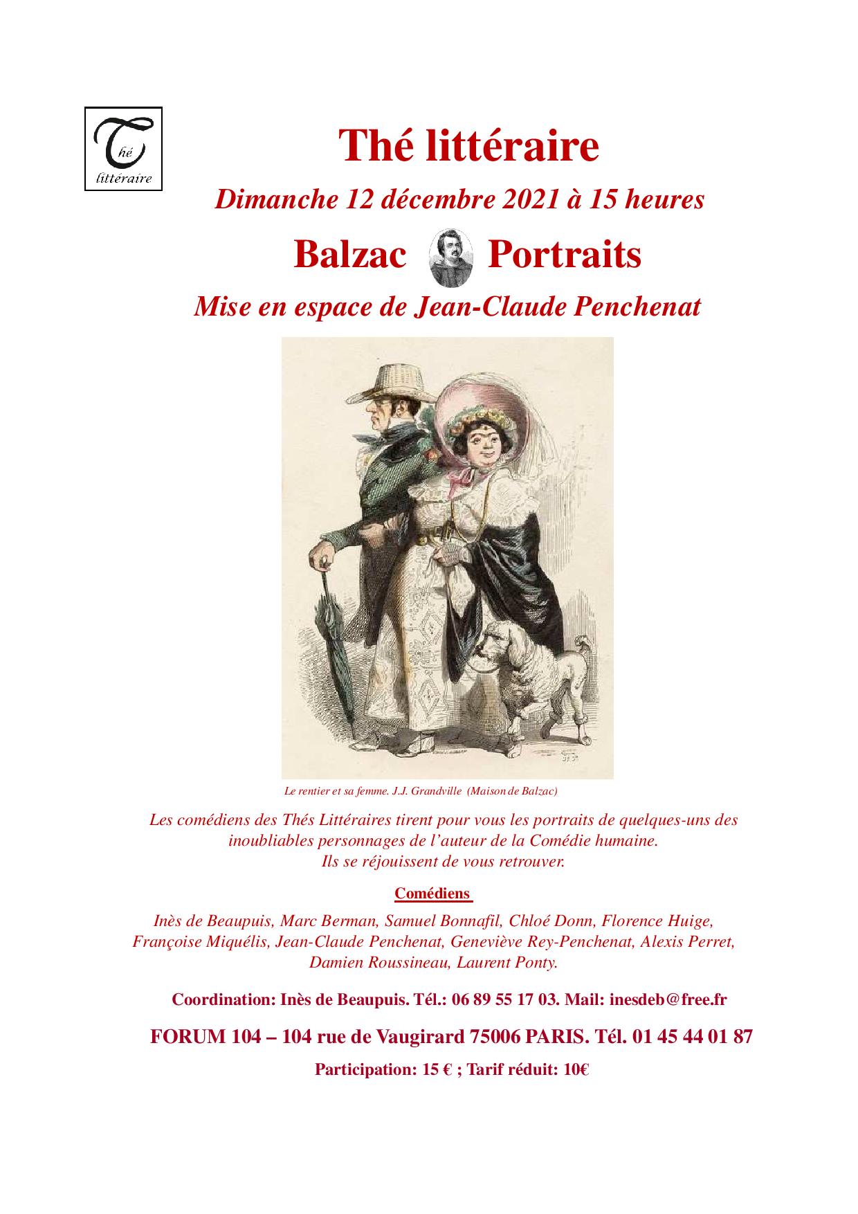 Pour nos retrouvailles depuis le rendez-vous manqué du 15 mars 2020, j’ai choisi, sur les conseils avisés d’Inès de Beaupuis, de replonger dans Balzac et de confier à quelques-uns de mes amis comédiens des portraits de personnages qui vous évoqueront peut-être quelque contemporain ou voisin d’immeuble dans la langue du maitre incomparable de la Comédie Humaine.